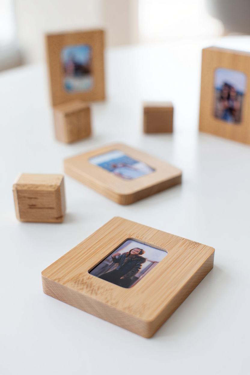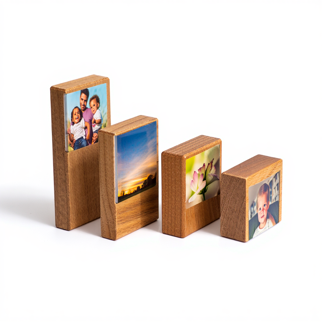 מגוון מגנטים ובלוקים מעץ בעיצובים שונים – אידיאליים למתנות, מזכרות ואירועים.