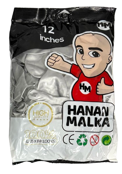 חבילת בלון כרום בצבע כסף 100 בלונים בחבילה בגודל 12 אינץ
