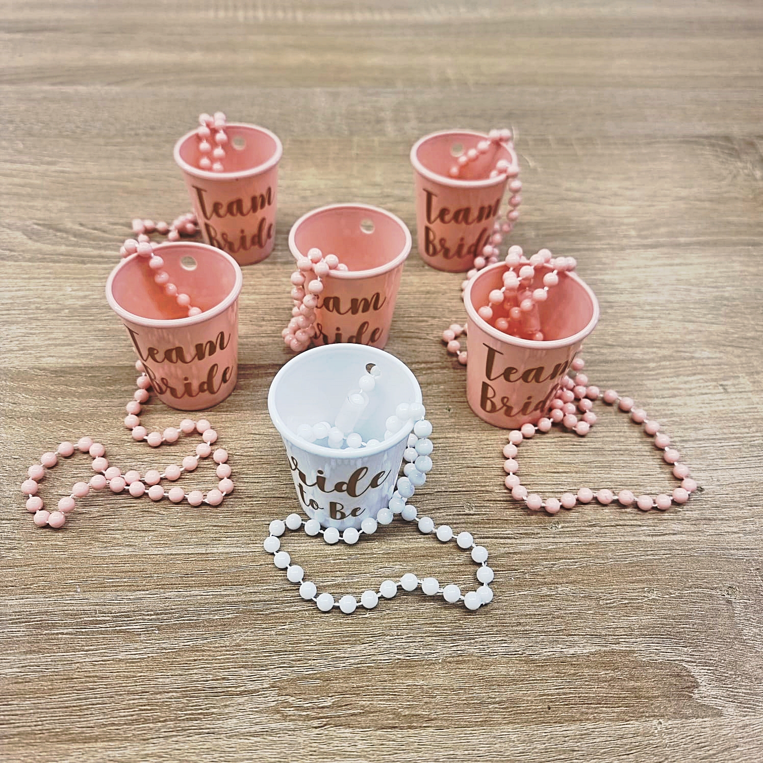 כוס שוט עם שרשרת פנינים מארז 6 יח צבע אפרסק