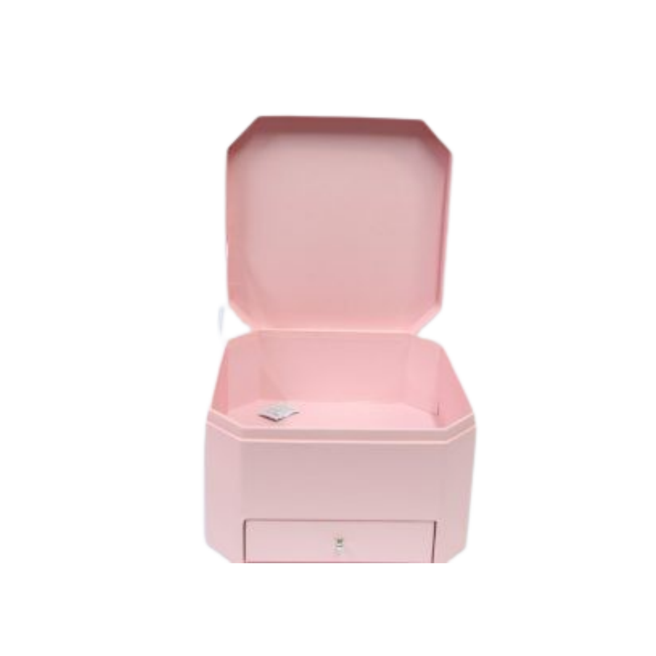קופסת תכשיטים גדולה נפתחת עם מגירה בצבע וורוד