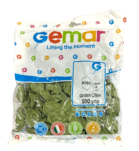 בלון גומי צבע ירוק זית Gemar דגם 098 בגודל 5 אינץ