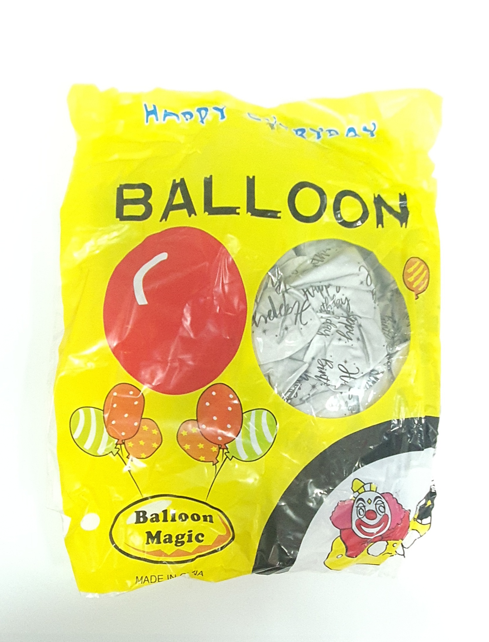 בלון כרום עם הדפס Happy Birthday כסוף 12 אינץ