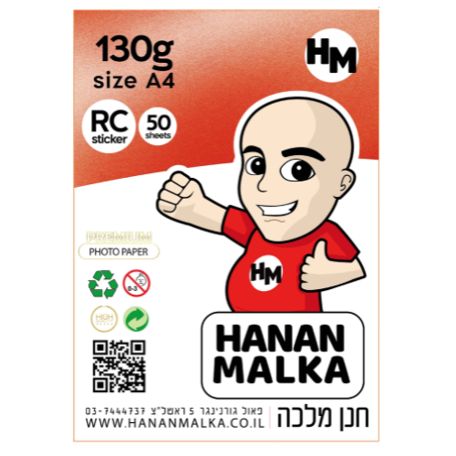 נייר פוטו מדבקה A4 משקל 130 גרם, מארז 50 יחידות