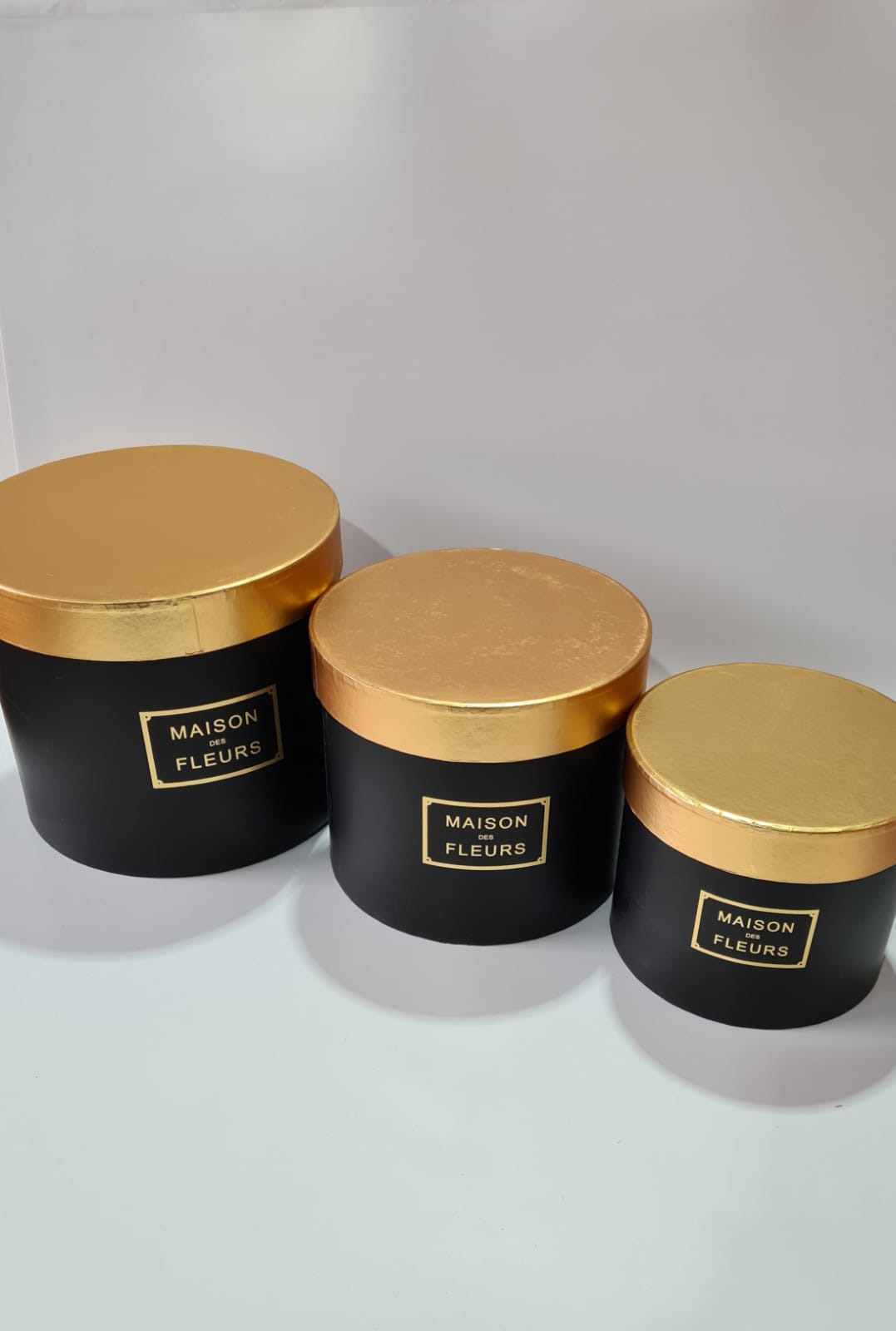 סט עגול 3 קופסאות ב 3 גדלים צבע אדום מכסה זהב