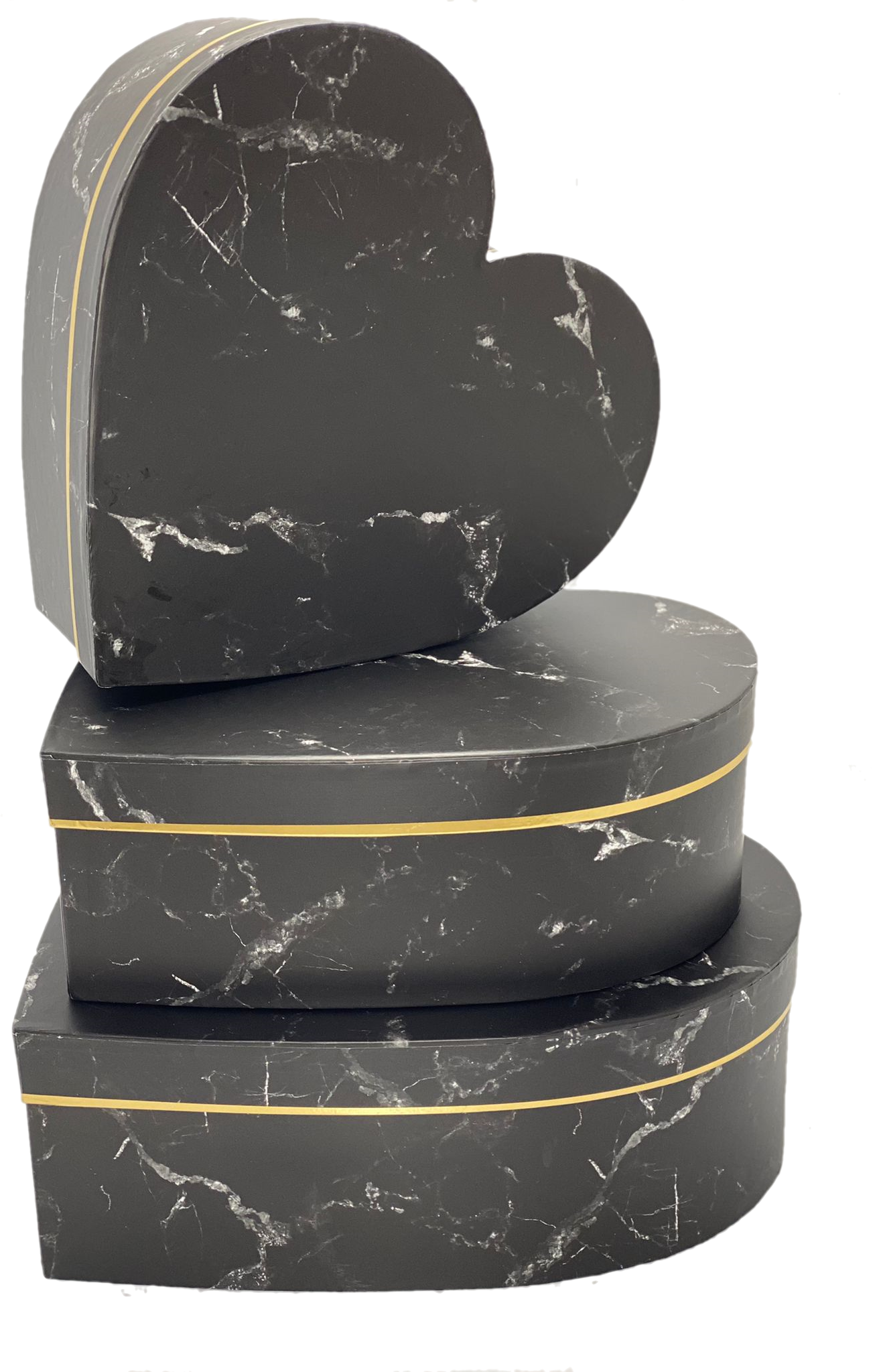 סט 3 קופסאות בצורת לב בצבע שחור שיש