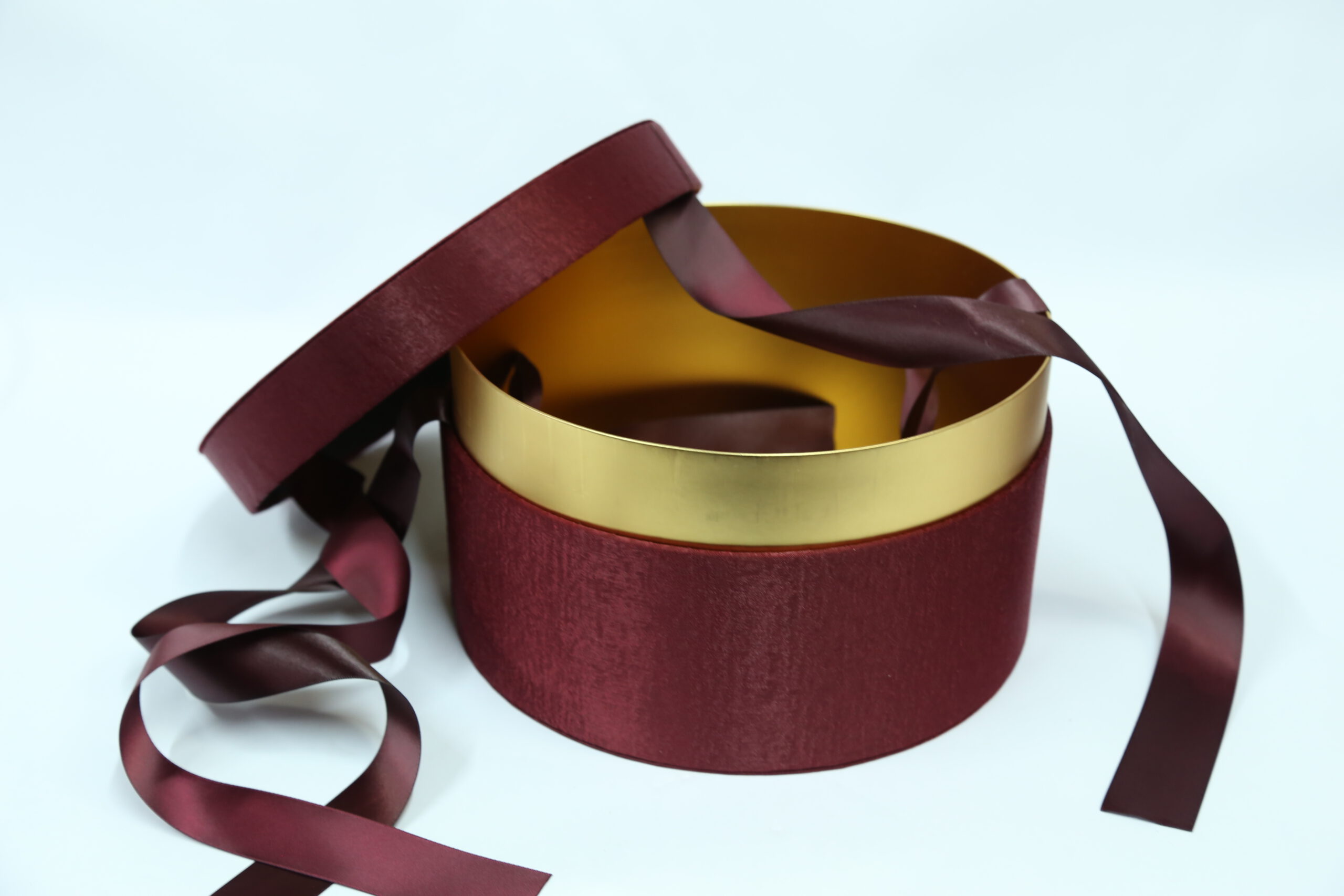 קופסה עגולה גדולה קטיפה בצבע בורדו