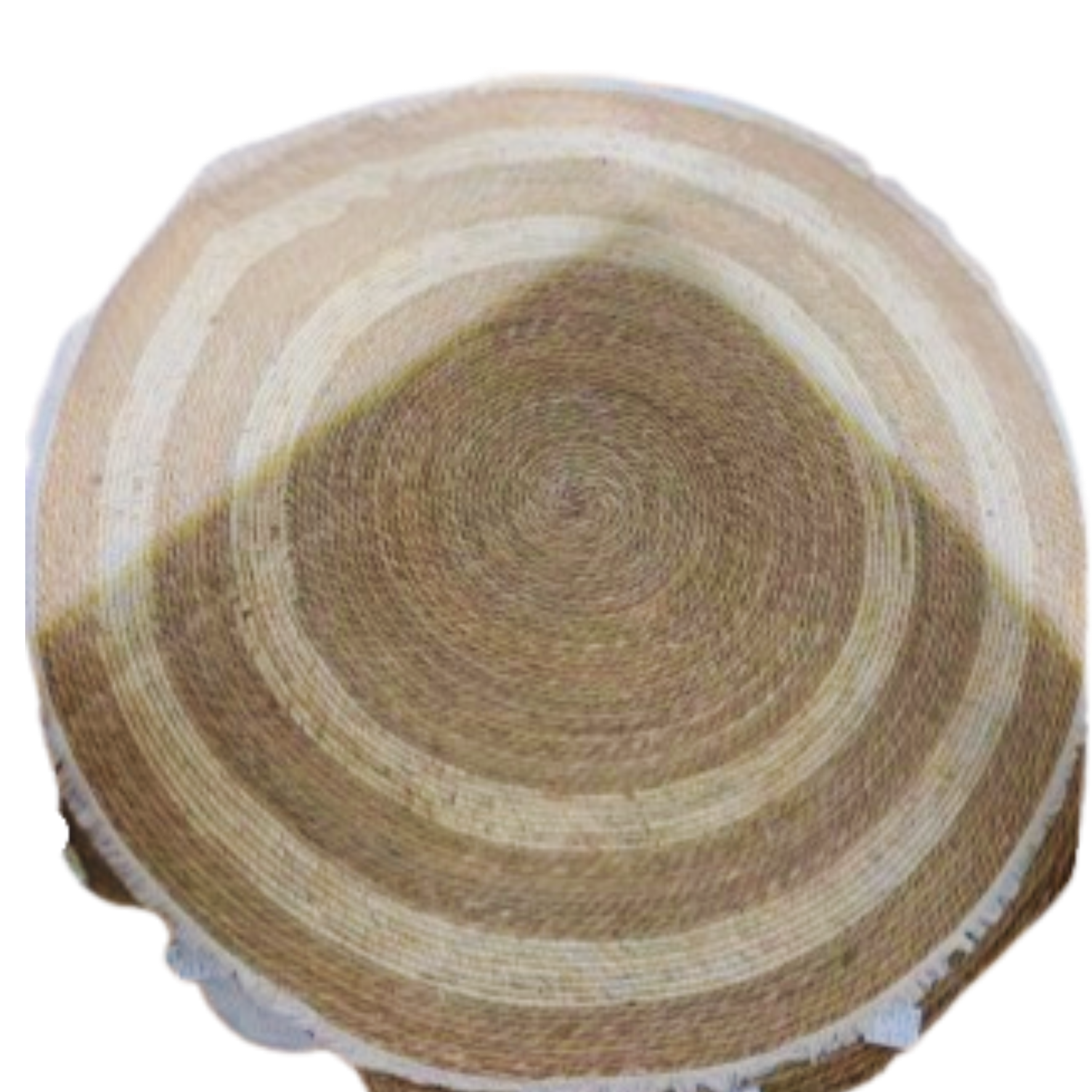 שטיח בד קש עגול צבע חום לבן קוטר 120 ס"מ